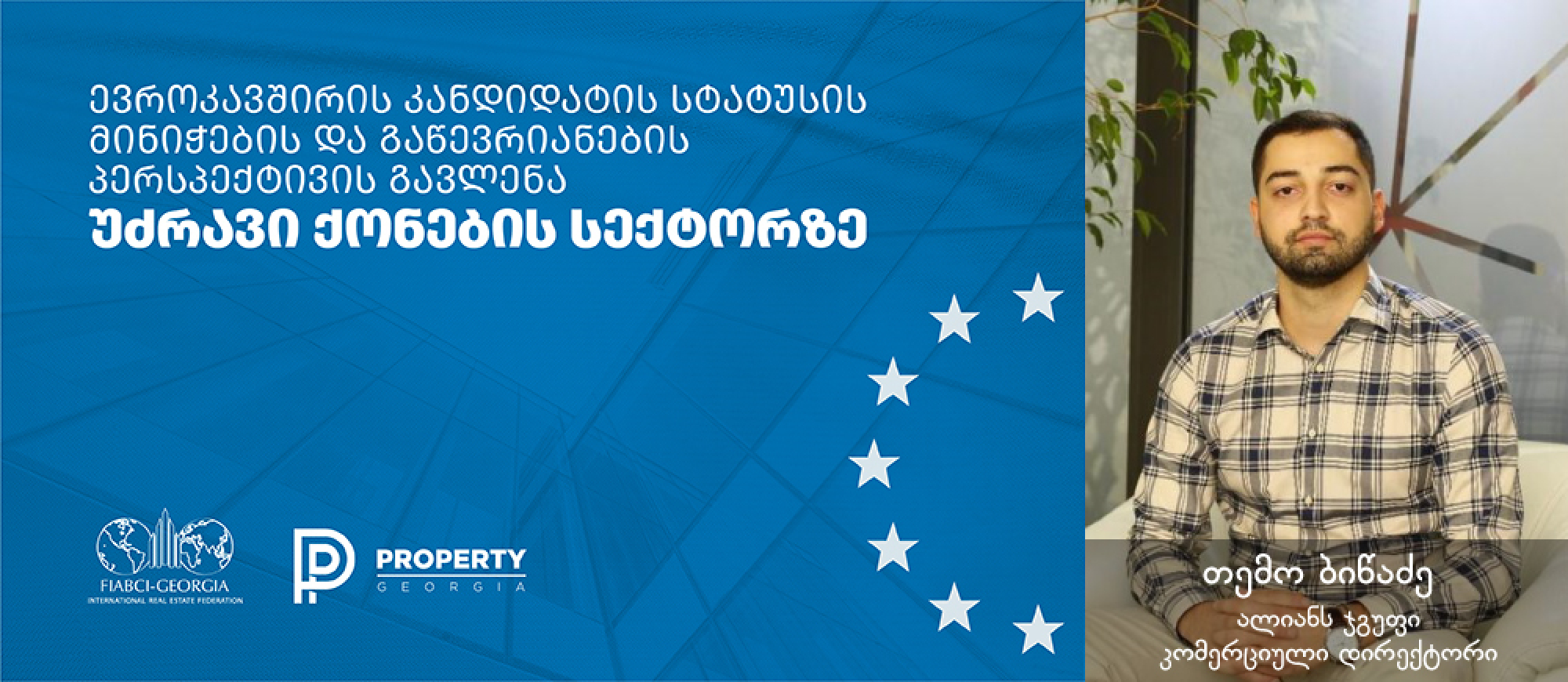 თემო ბიწაძე - ალიანს ჯგუფი |კომერციული დირექტორი- ევროკავშირის კანდიდატის სტატუსის მინიჭების და გაწევრიანების პერსპექტივის გავლენის შესახებ უძრავი ქონების სექტორში.