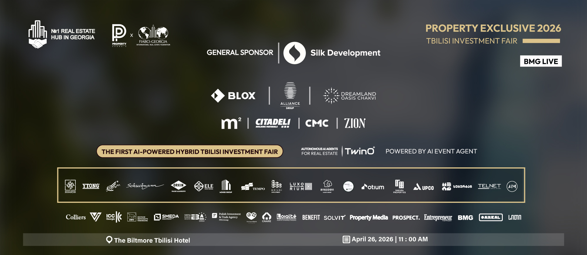 Property Georgia-ს და FIABCI-Georgia-ს ორგანიზებით, 26 აპრილს, 11:00 საათზე, სასტუმროში ,,ბილტმორი თბილისი” საქართველოში პირველი AI-ზე დაფუძნებული უძრავი ქონების საინვესტიციო ღონისძიება გაიხსნება. ღონისძიების მხარდამჭერია ავტონომიური AI Agents უძრავი ქონების პლატფორმა TwinO.